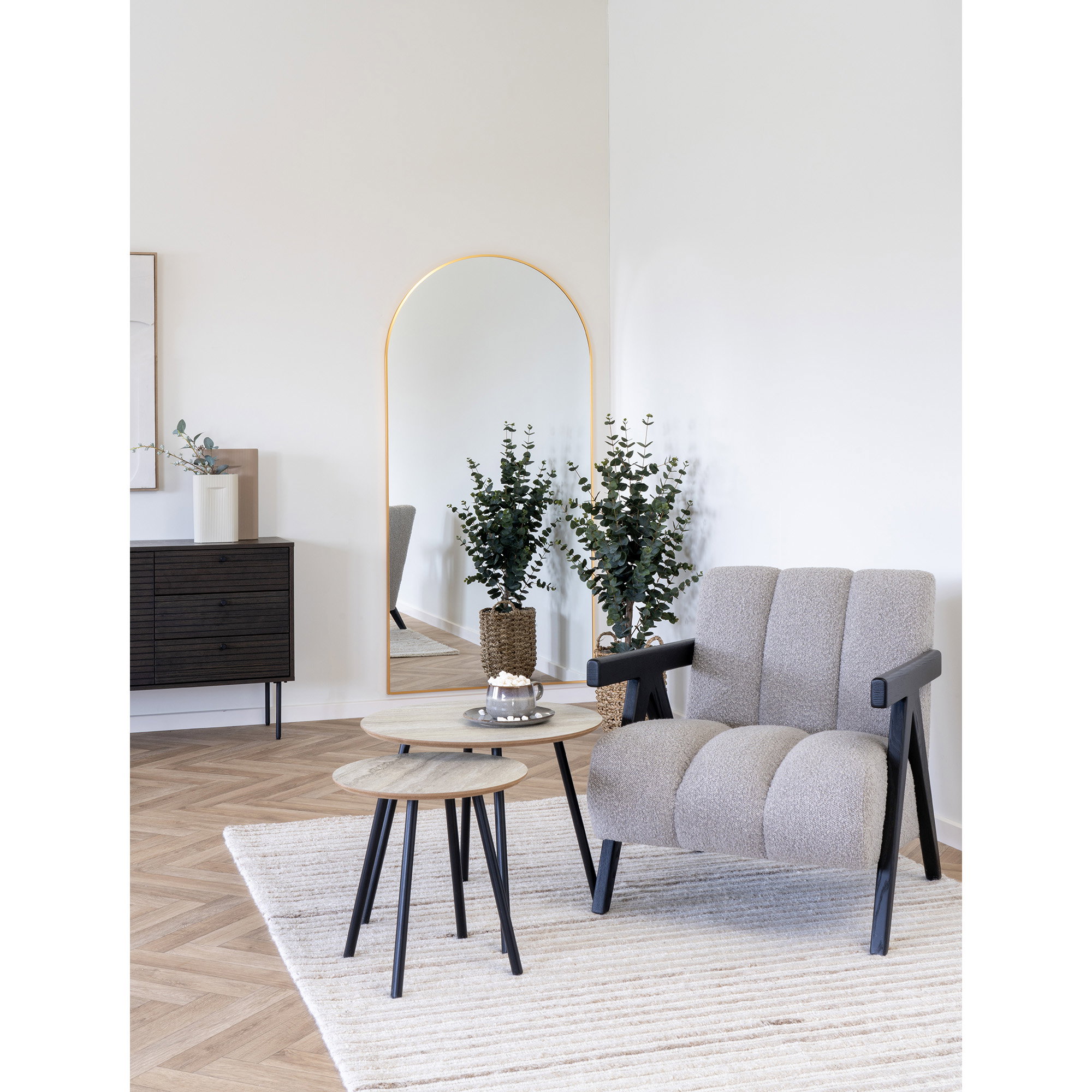 Kavos staliukas, travertino imitacijos, juodos kojos<br />ø55x45 cm