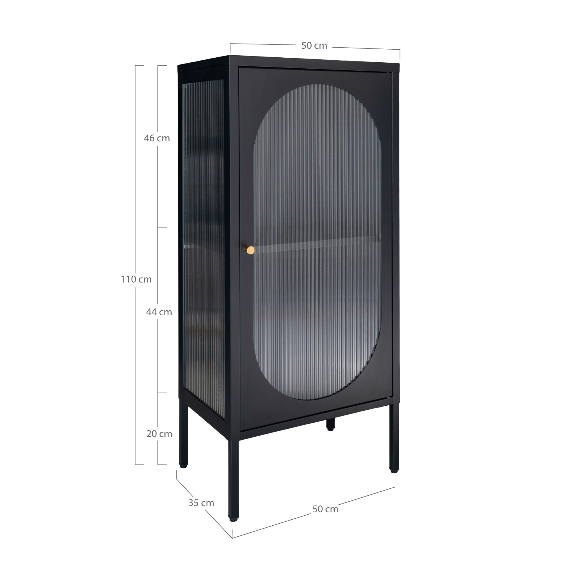 Display Cabinet, 1 rippled glass door, steel, black<br>50x35x110 cm