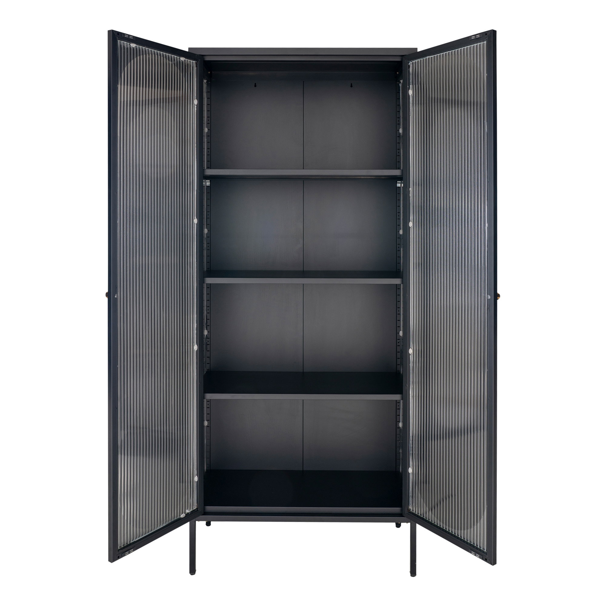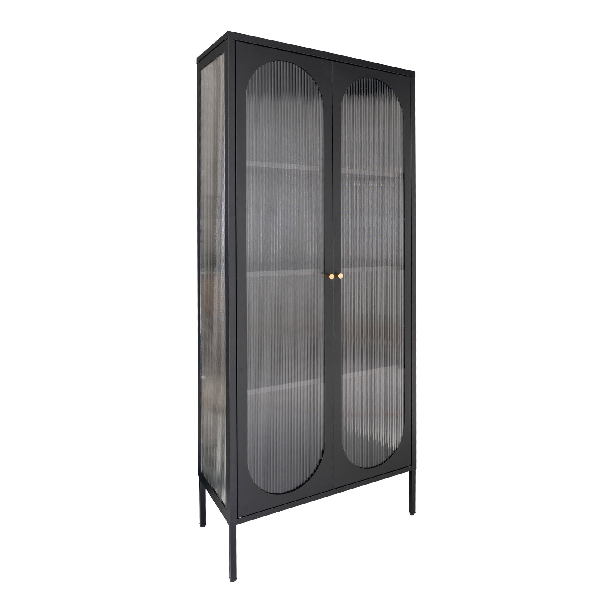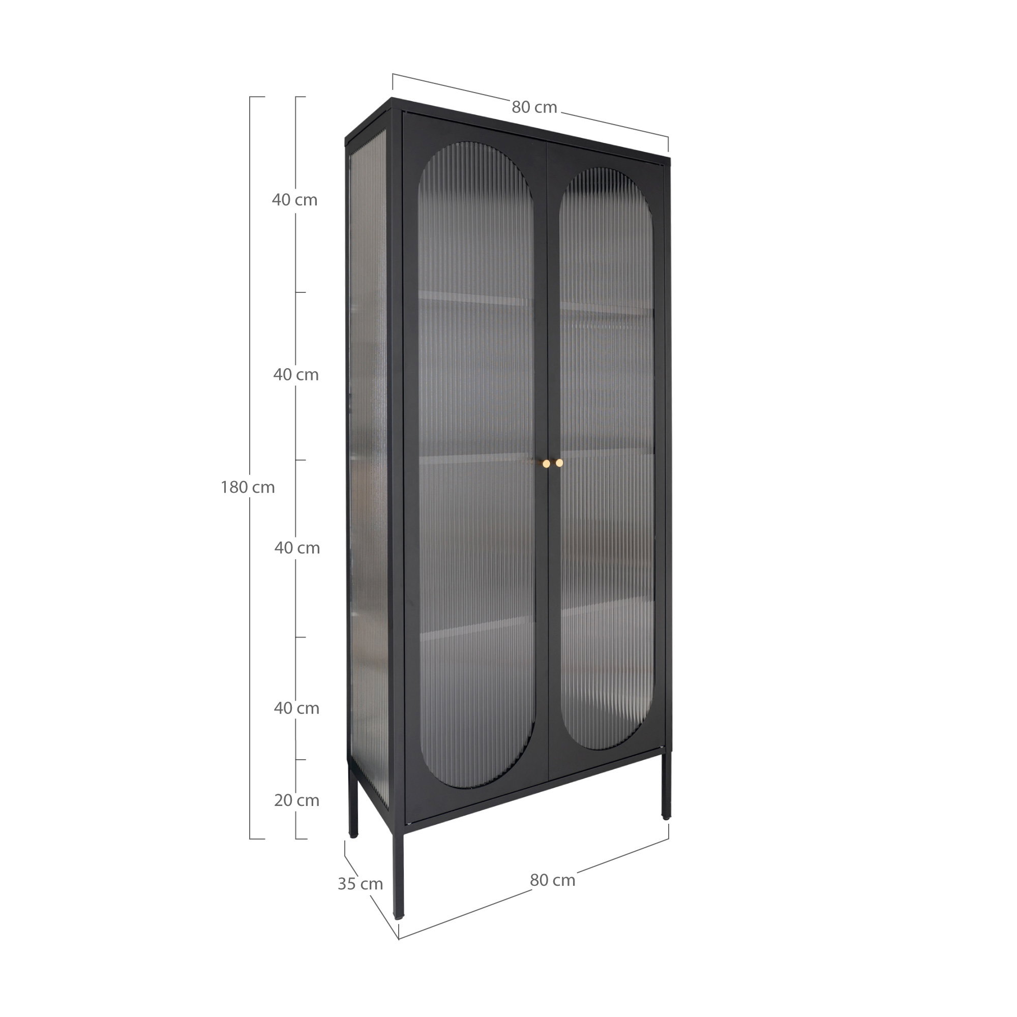 Ekspozicijų skrynia, 2 banguotos stiklo durys, plienas, juoda<br>80x35x180 cm
