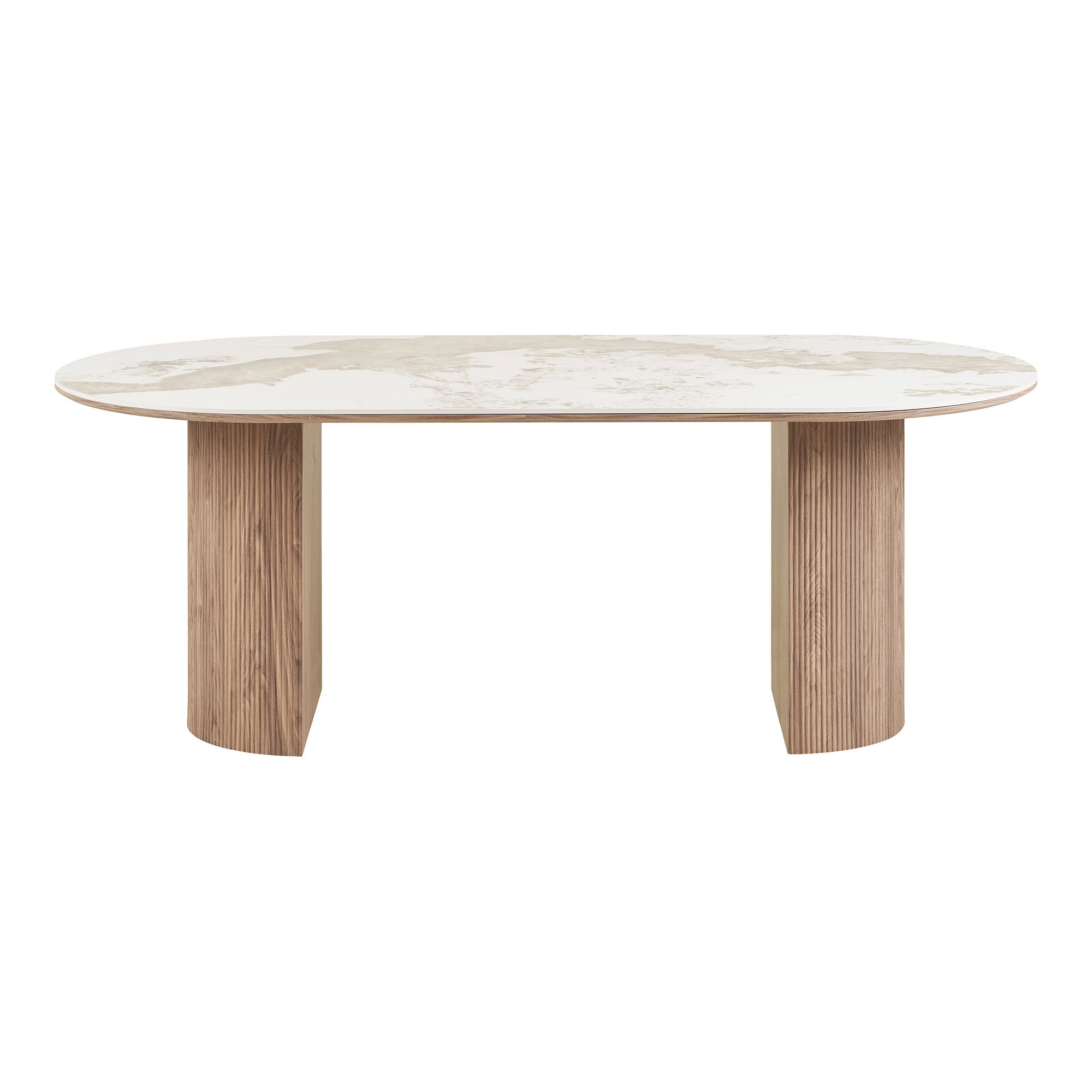 Valgomojo stalas, keramikinis stalviršis, baltas/rudas<br>100x210x76 cm