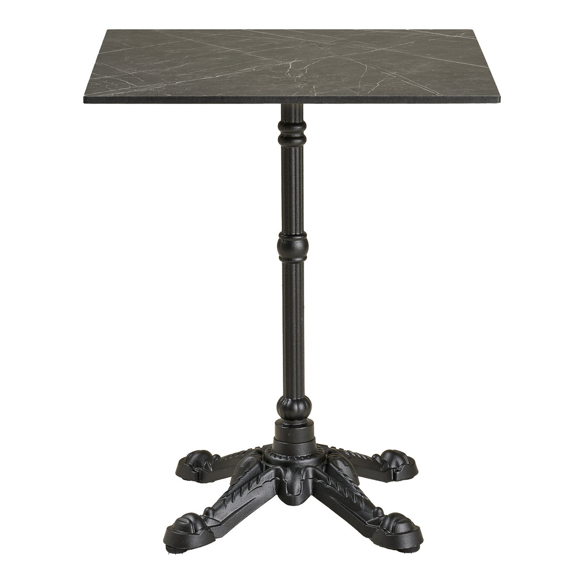 Bistro table, marble look, dark grey, black legs, cast iron<br>60x60x73 cm