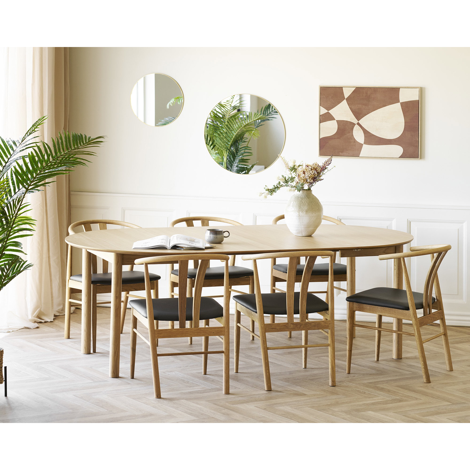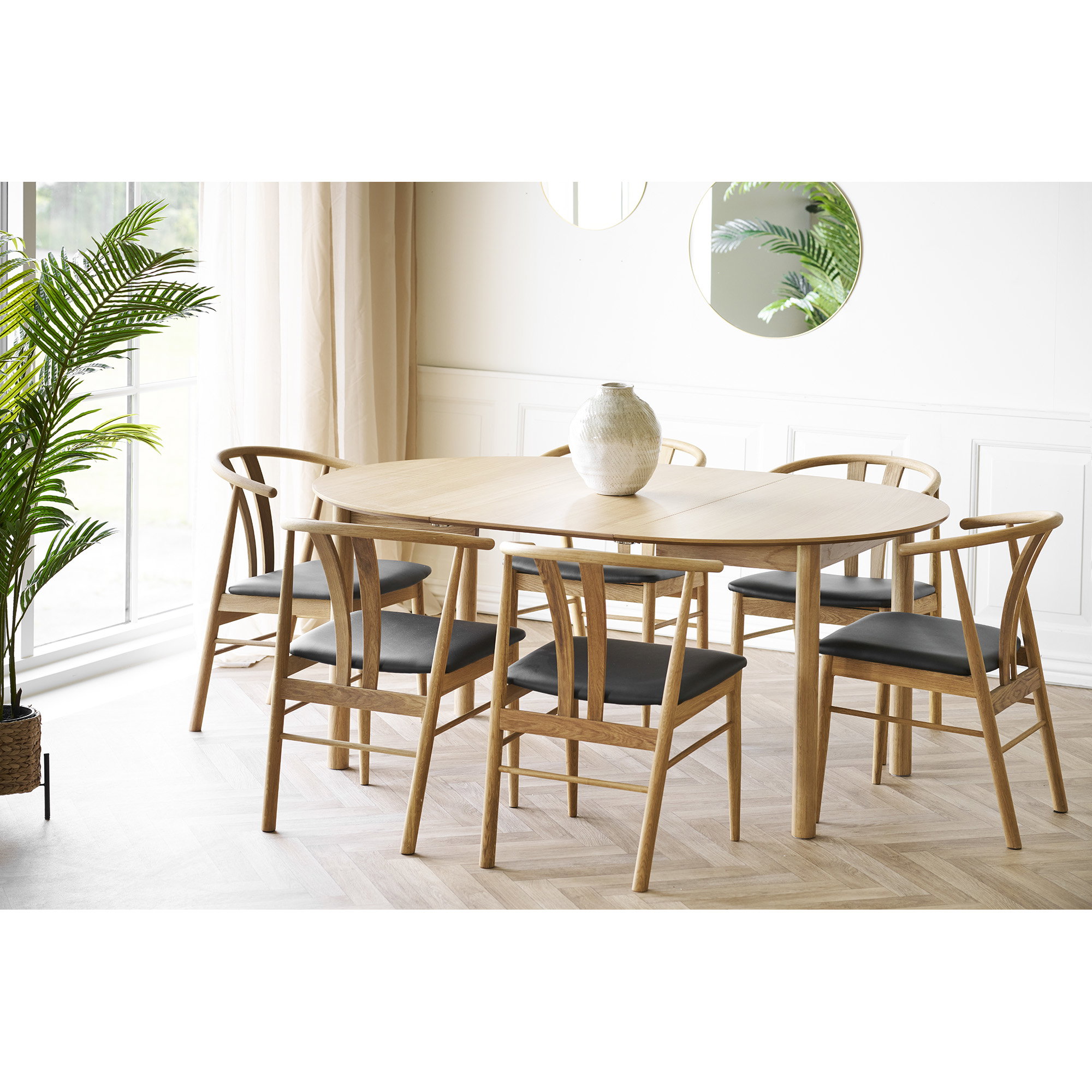Valgomojo stalas, ąžuolo fanera, natūralus, įskaitant dvi prailginimo plokštes<br>ø120x120-170-220x75 cm