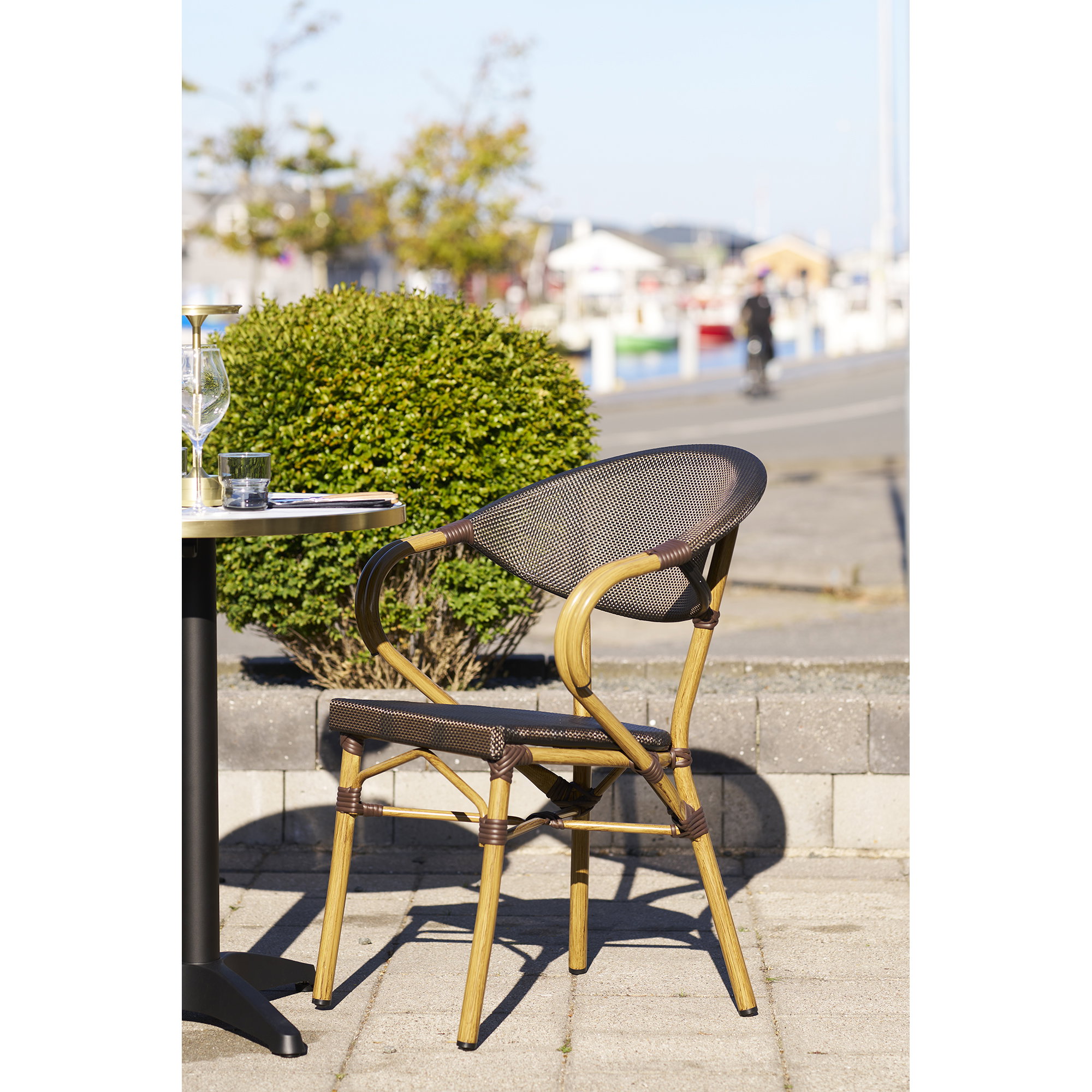 Valgomojo kėdė, aliuminis, textilene, tamsiai ruda, bambuko išvaizdos rėmas