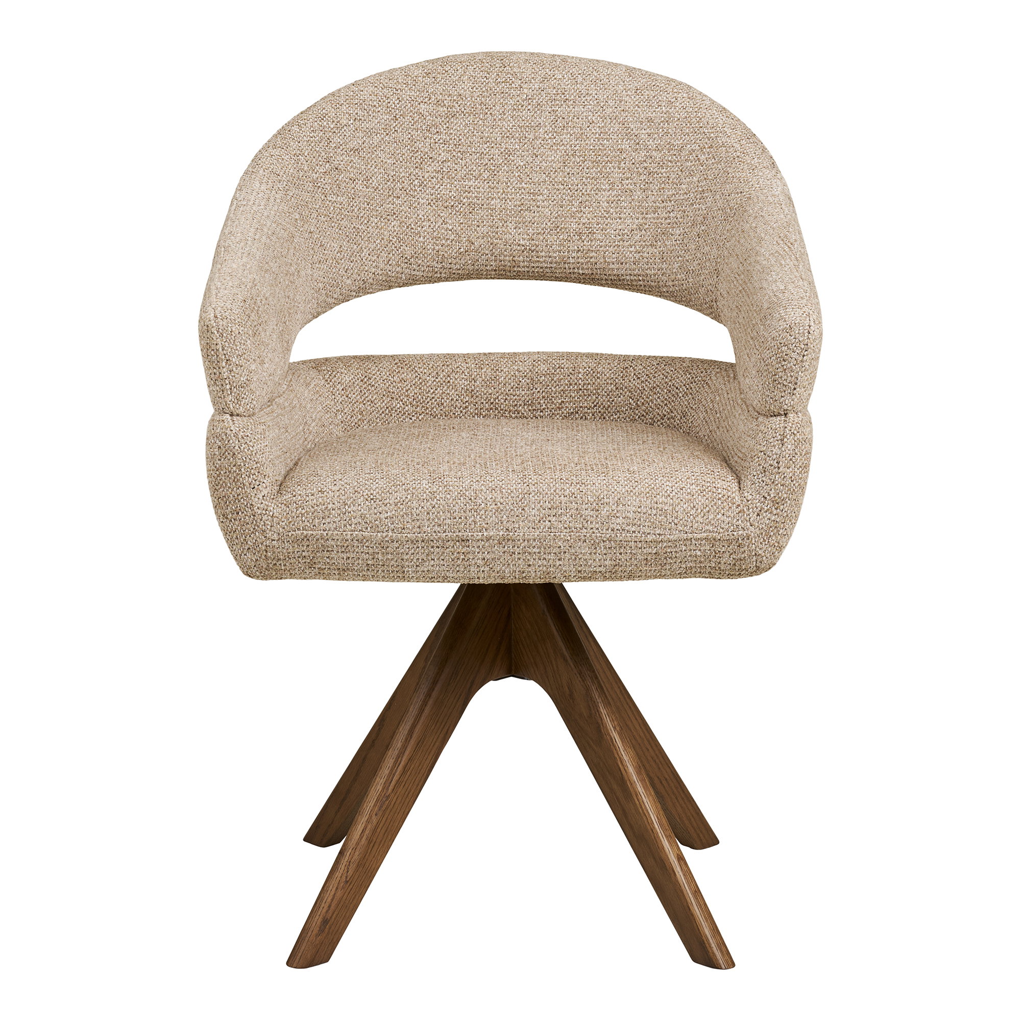 Valgomojo kėdė su sukimo funkcija, smėlio spalvos, rudi ąžuolo kojos<br>HN1317