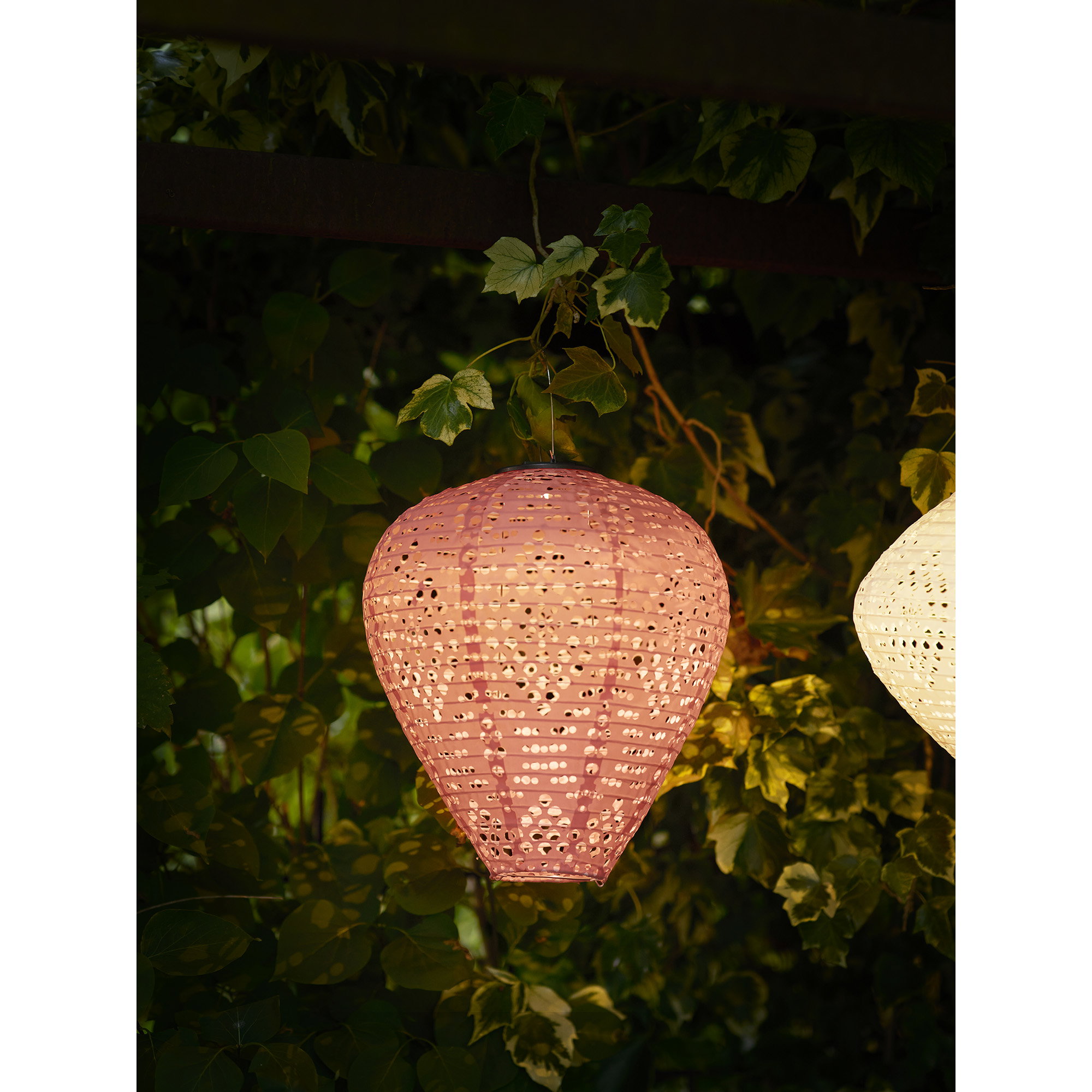 Lantern, rechargeable with integrated solar panel, rose