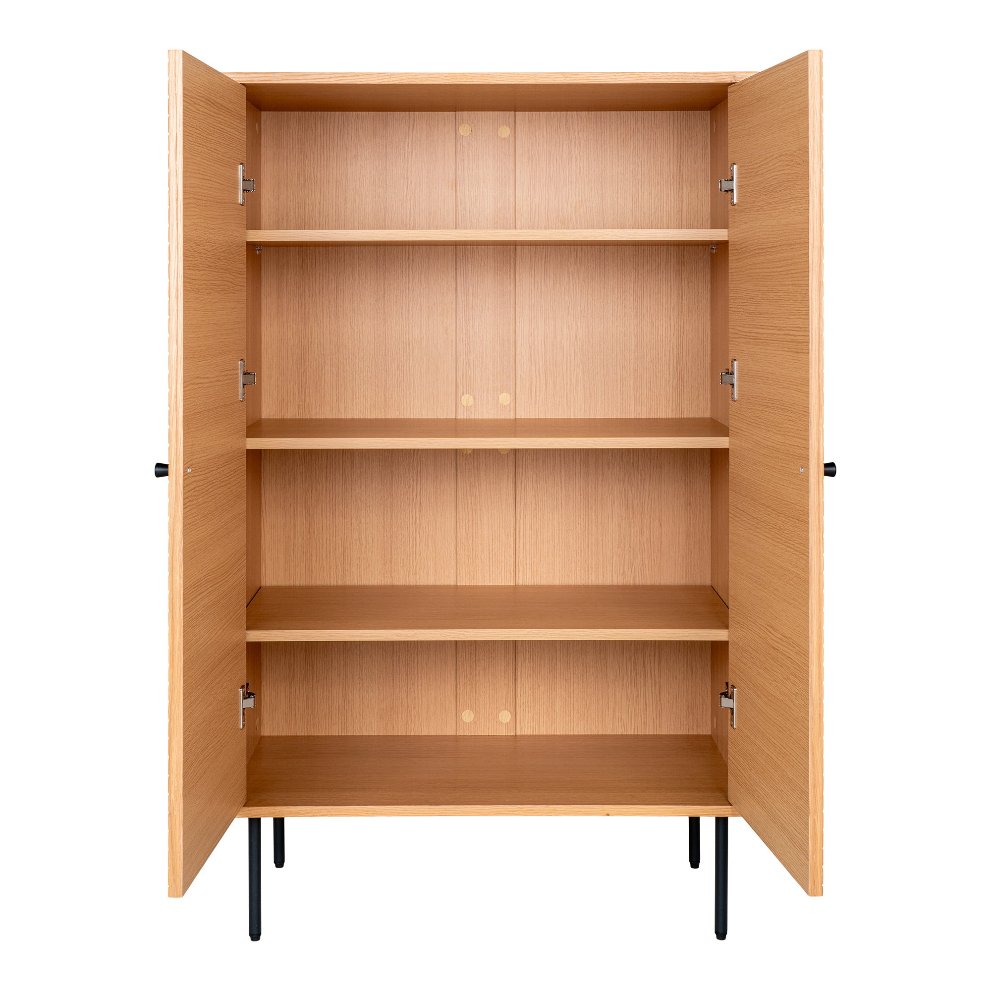 Aukšta spintelė su 2 durelėmis, ąžuolo faneruotė, natūrali spalva, juodos metalinės kojos<br>80x40x130 cm