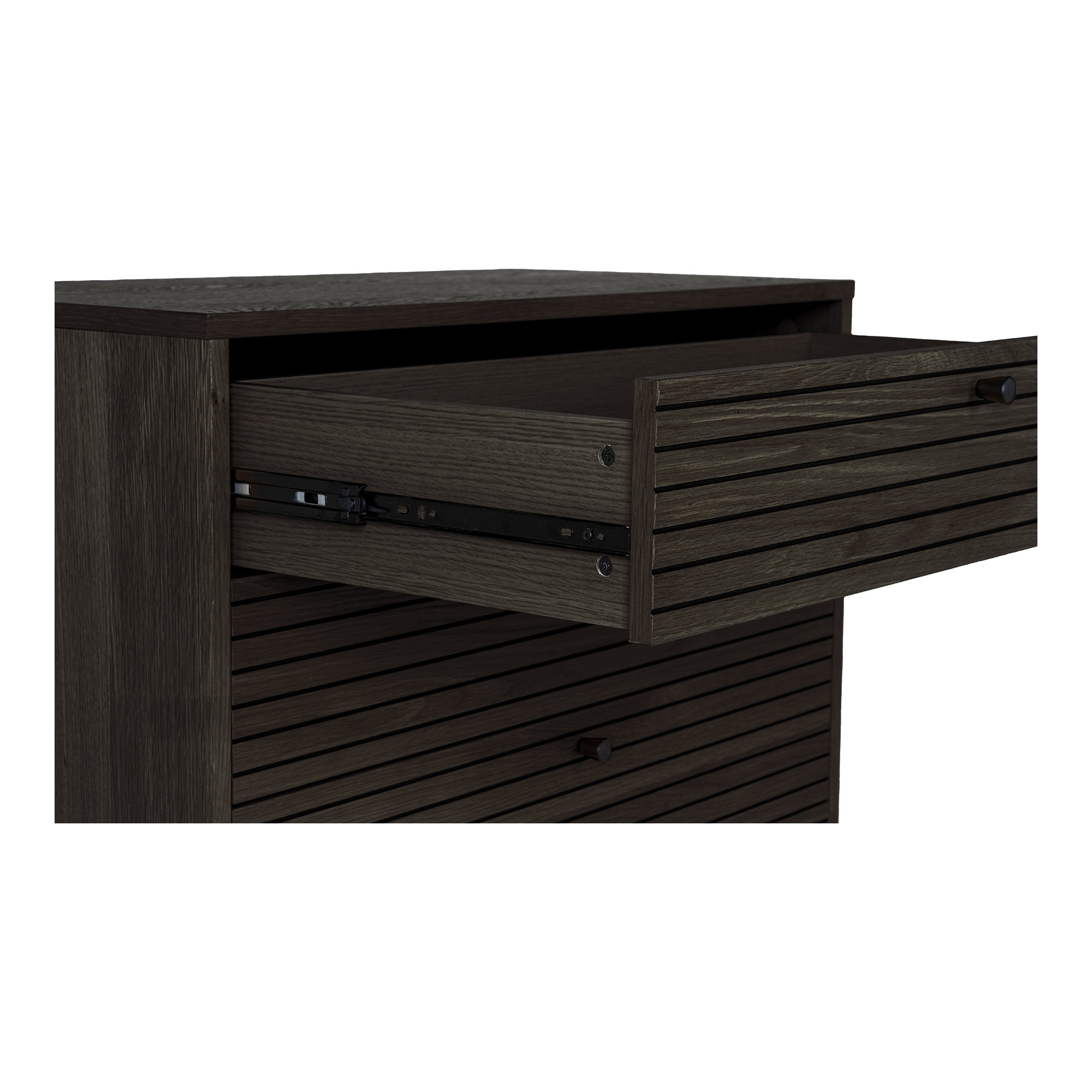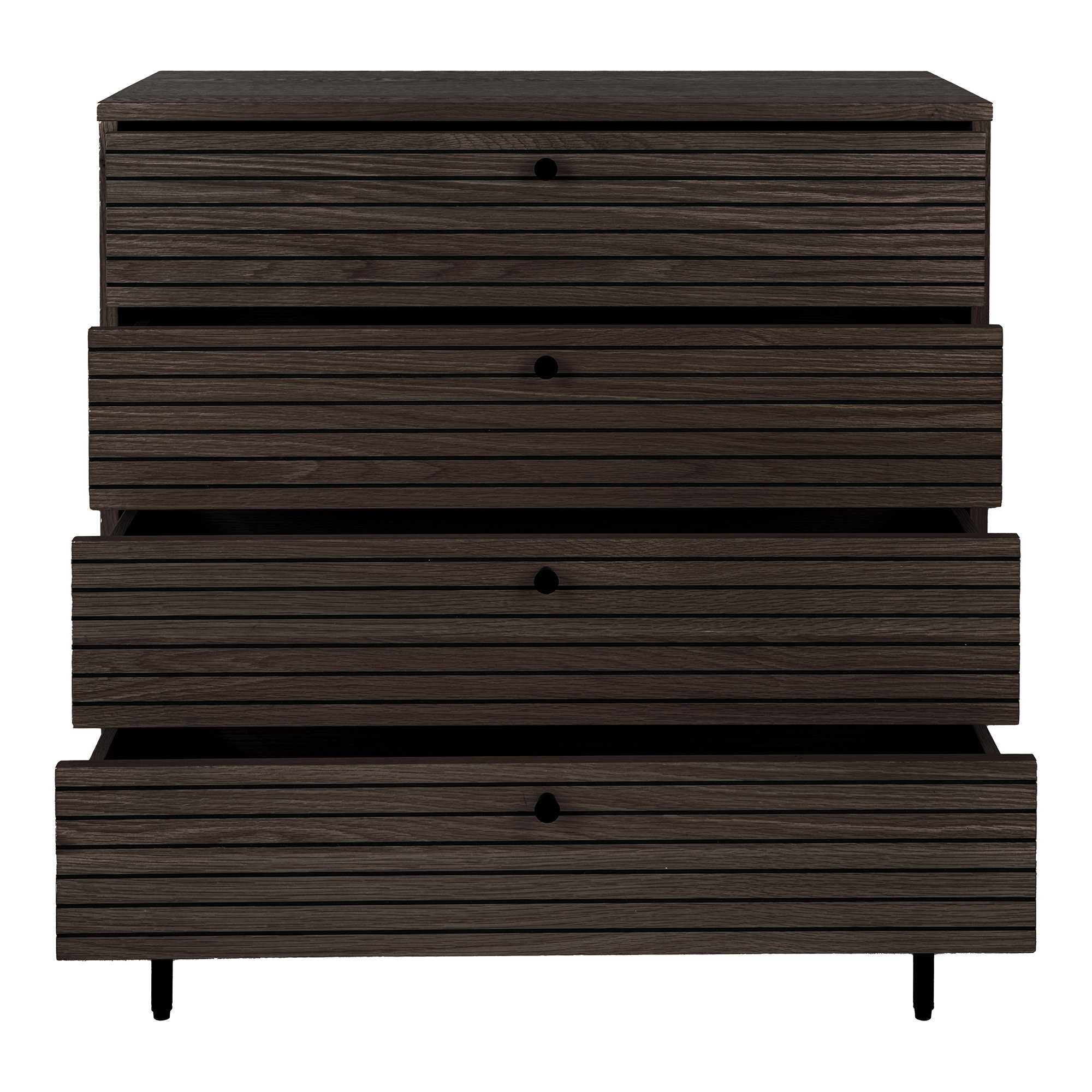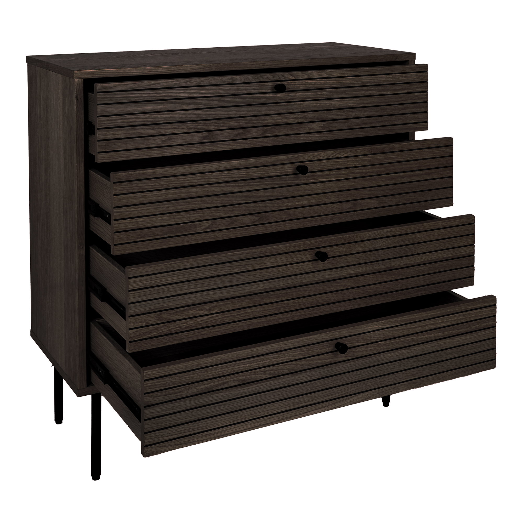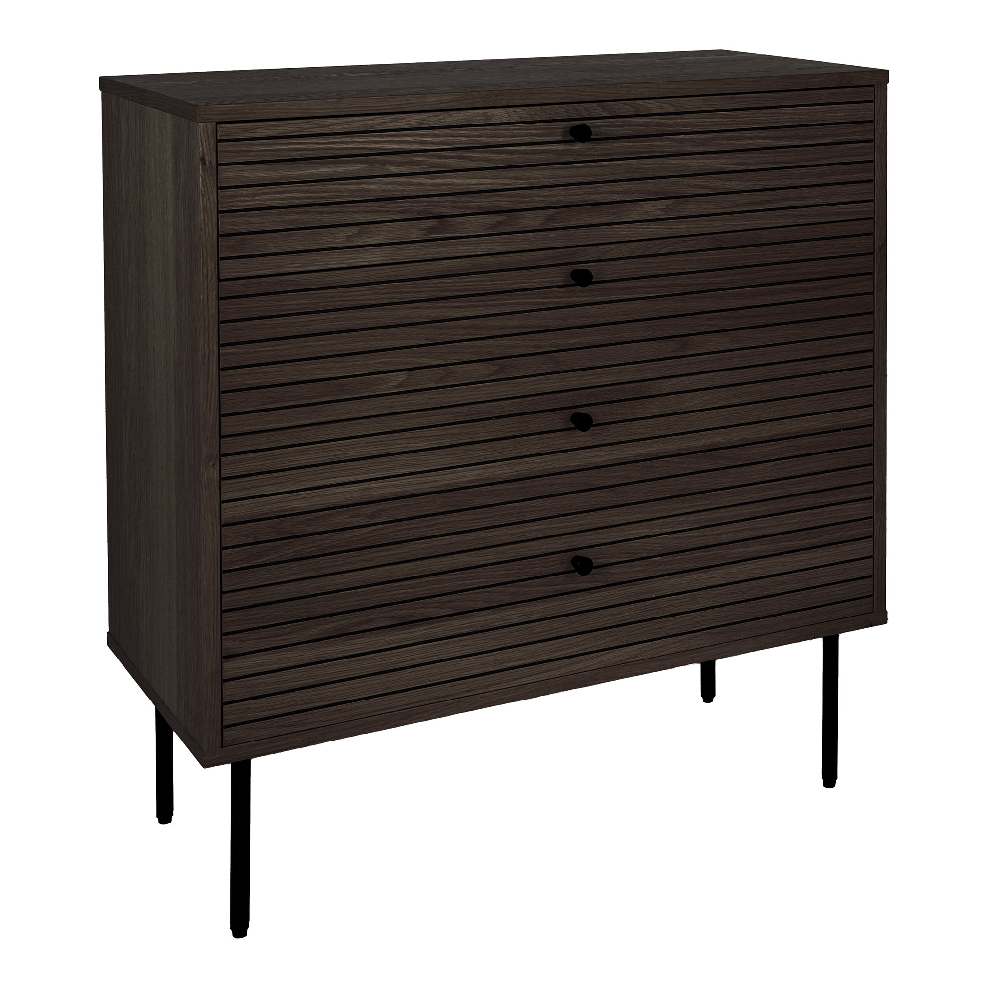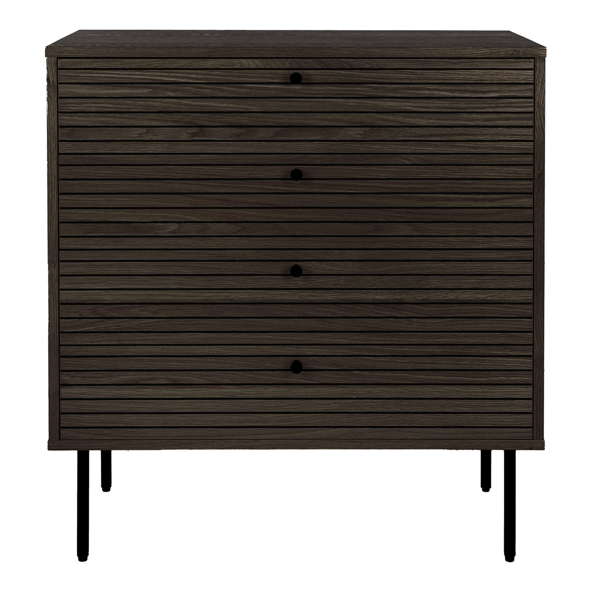 Chest, 4 drawers, oak veneer, smoked, black metal legs<br />80x40x85 cm