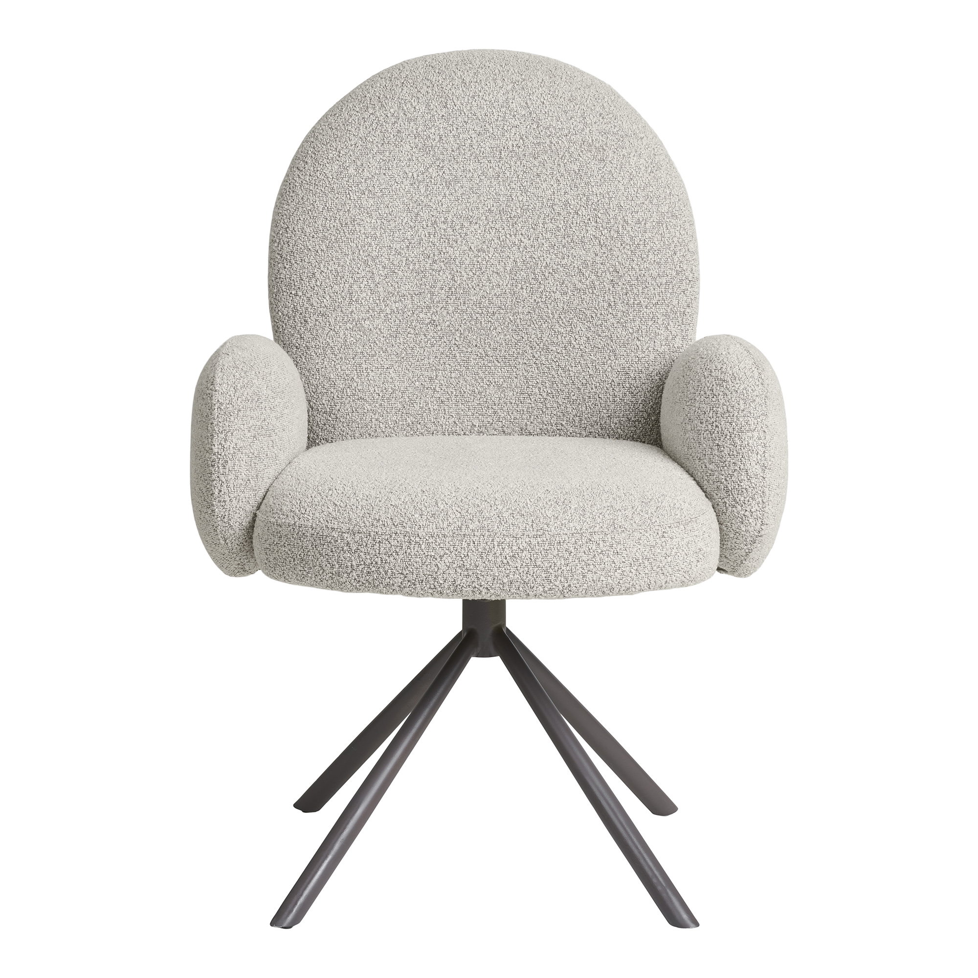 Valgomojo kėdė su pasukimo funkcija, porankiais, buklė, smėlio spalvos, pilkos kojos<br>HN1267