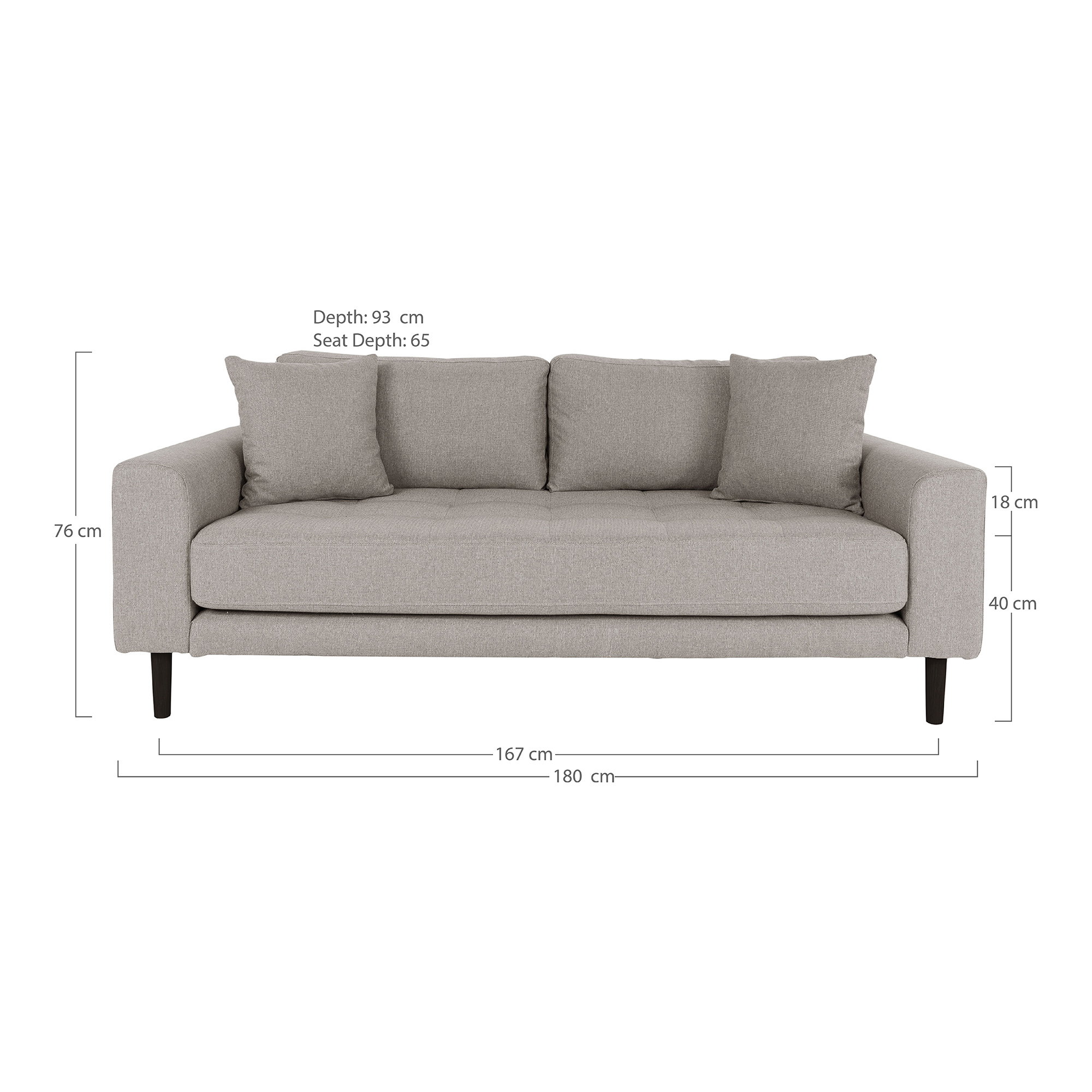 2,5 vietų sofa, akmens spalvos, su 2 pagalvėlėmis ir juodo medžio kojelėmis<br />HN1030