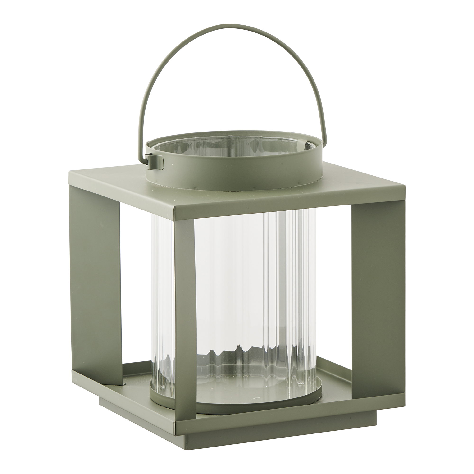 Lanterna, stiklas/metalas, žalia<br>18x18x20,5 cm