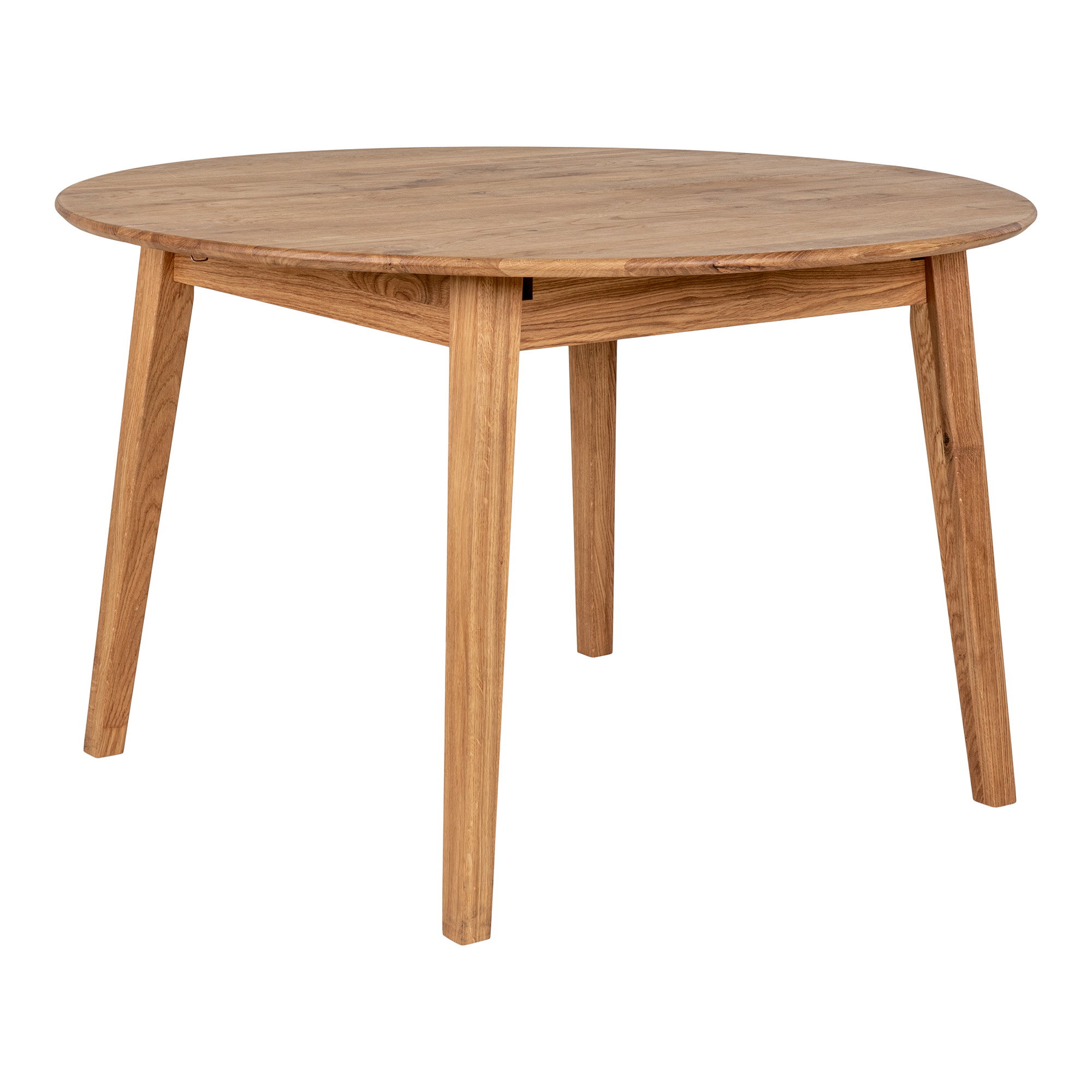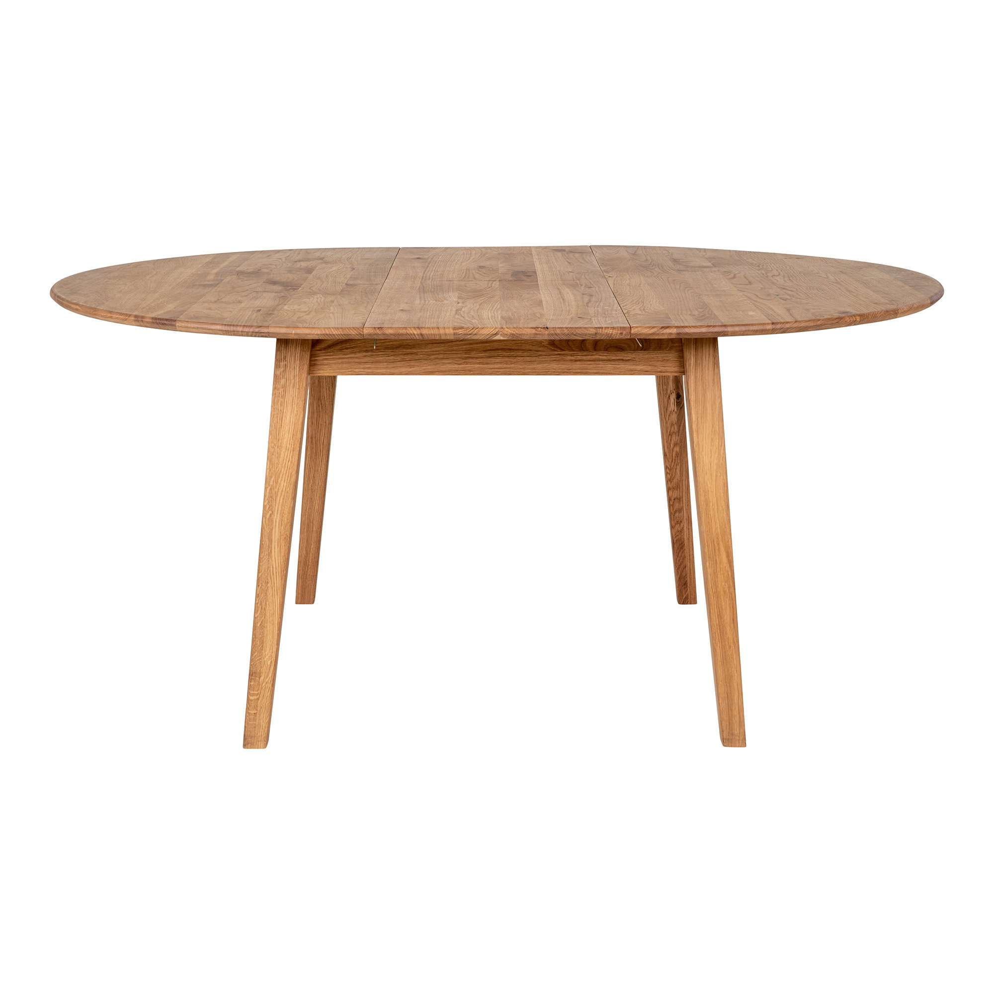 Valgomojo stalas, ąžuolas, natūralus, su įmontuota prailginimo plokšte su „drugelio“ funkcija<br>ø118x118-158x75 cm