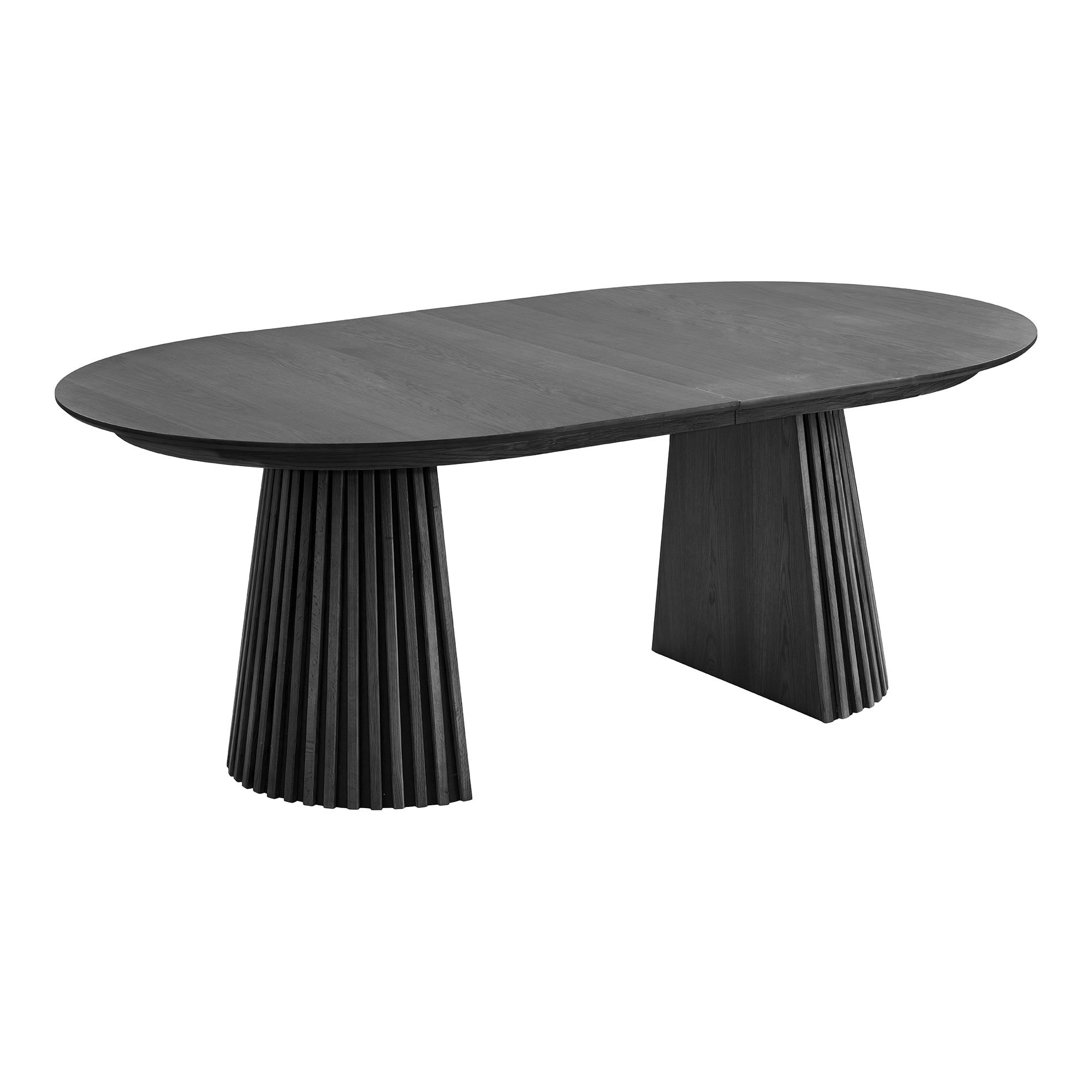 Valgomojo stalas, ąžuolo fanera, juodas, įskaitant dvi prailginimo plokštes<br>120x200-250-300x75 cm