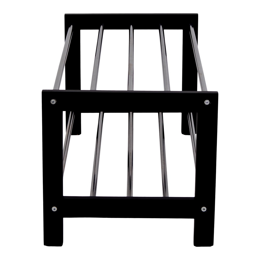 Shoe rack, wood/steel, 2 shelves, black<br>78x34 cm