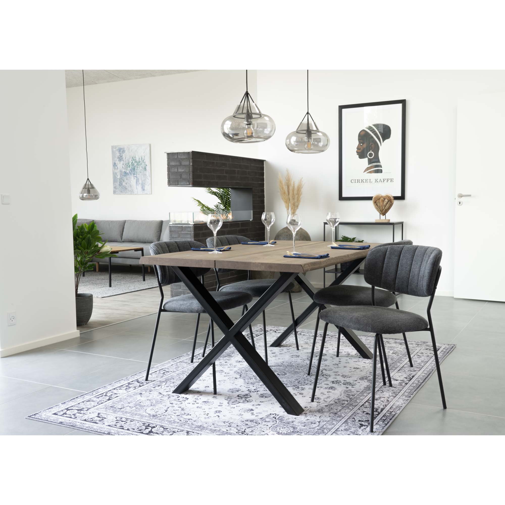 Valgomojo stalas su banguotu kraštu, ąžuolas, rūkytas, paruoštas prailginimo plokštėms<br>95x140x75 cm