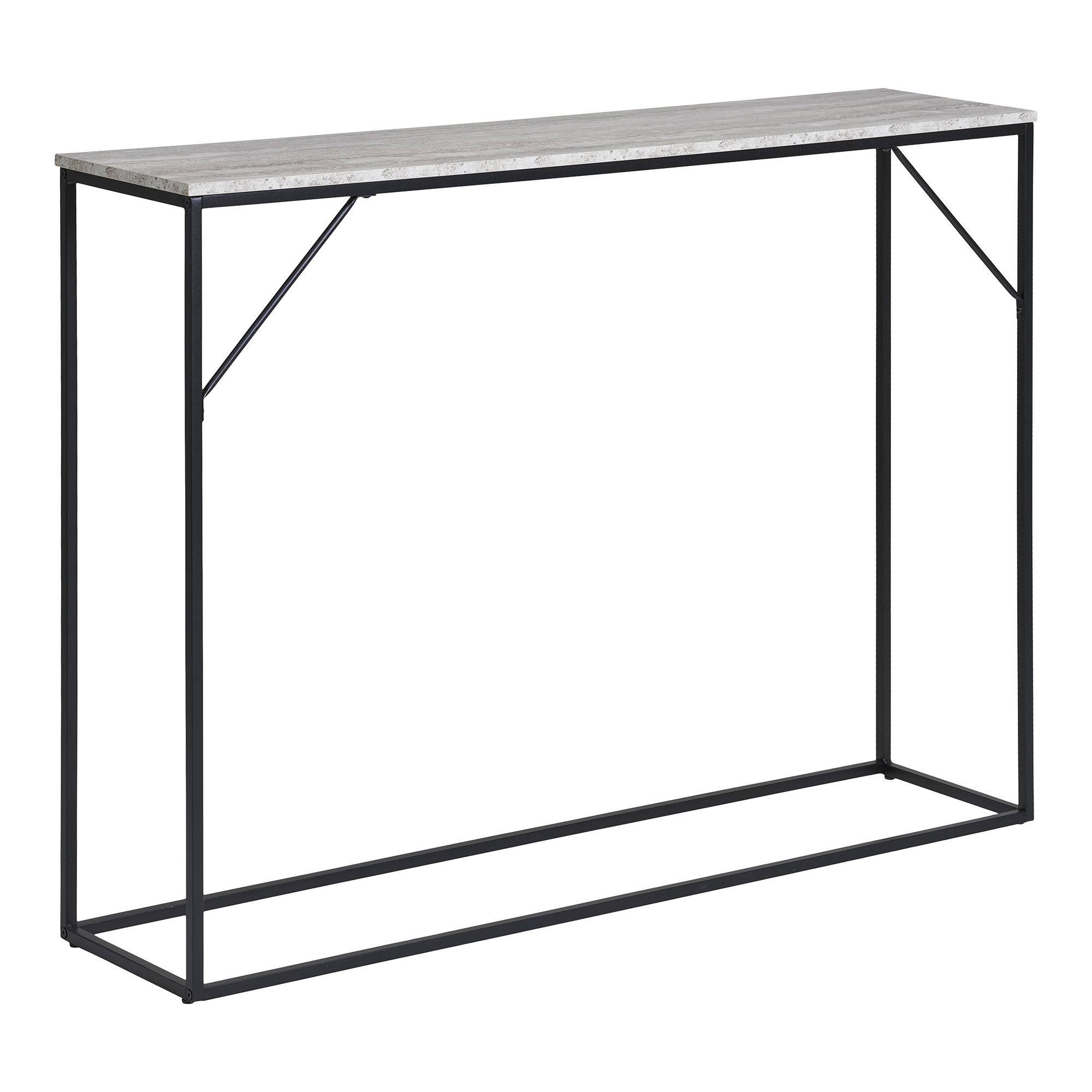 Konsolinis staliukas, 1 lentyna, travertino išvaizda, juodas rėmas<br />110x26x80 cm