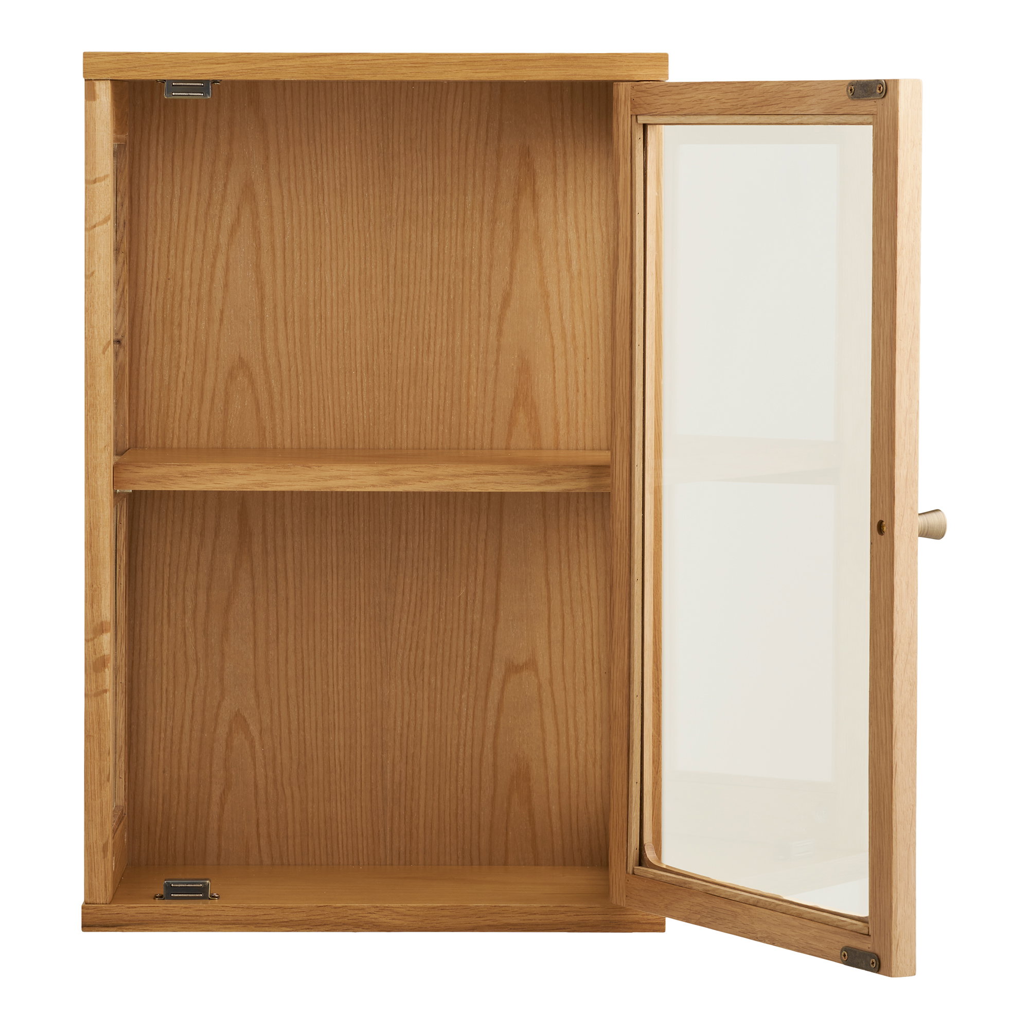 Pakabinama spintelė, ąžuolas/ąžuolo faneruotė/grūdintas stiklas, natūrali spalva<br>20x40x60 cm